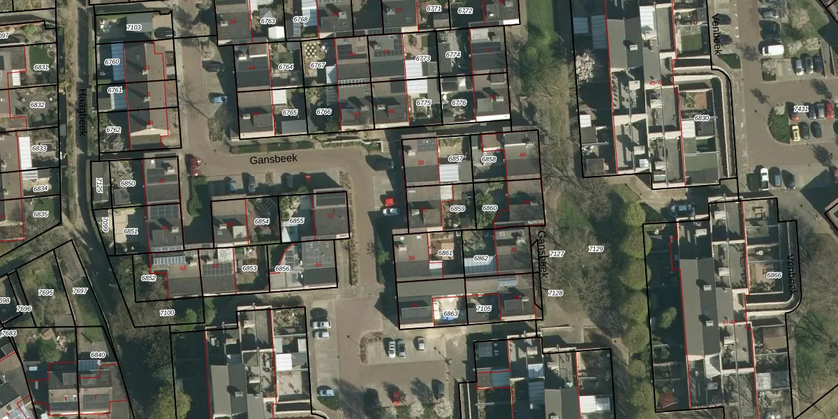 Gansbeek 36 is gelegen op kadastraal perceel GLN00B6859. Deze kadastrale aanduiding is uniek en wordt gebruikt door het Kadaster om eigendomsrechten en andere zakelijke rechten vast te leggen. Het perceel maakt onderdeel uit van de kadastrale gemeente Geleen.