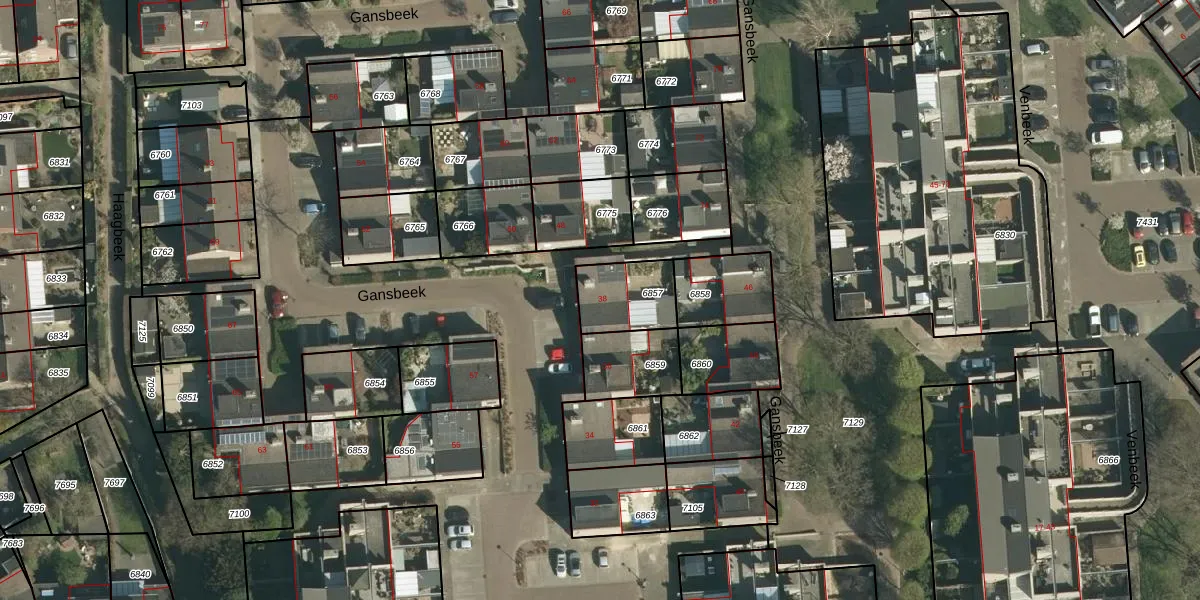Gansbeek 38 is gelegen op kadastraal perceel GLN00B6857. Deze kadastrale aanduiding is uniek en wordt gebruikt door het Kadaster om eigendomsrechten en andere zakelijke rechten vast te leggen. Het perceel maakt onderdeel uit van de kadastrale gemeente Geleen.