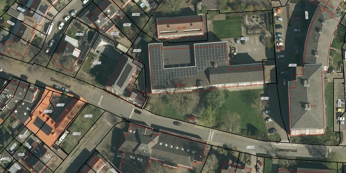 Het perceel waarop Geenstraat 32-A-4 staat heeft een oppervlakte van 4582 m². Dit is een zeer groot perceel. De perceeloppervlakte wordt geregistreerd door het Kadaster. Gedetailleerde informatie over de maten van dit perceel kunt u vinden in het rapport Kadastrale kaart met maatvoering van Geenstraat 32-A-4.