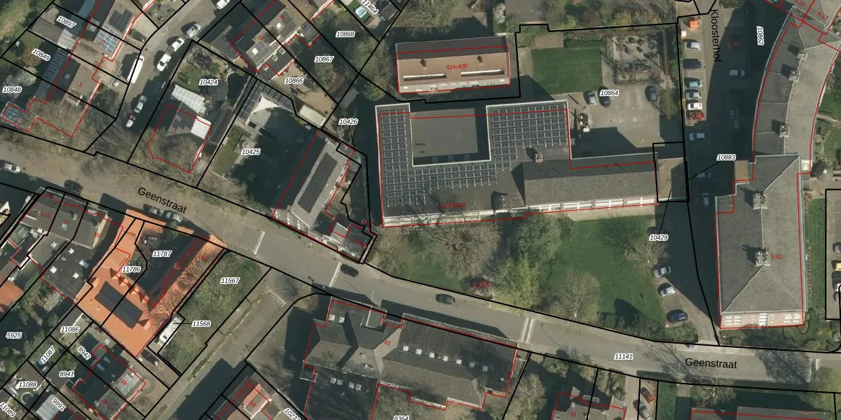 Het perceel waarop Geenstraat 32-B-4 staat heeft een oppervlakte van 4582 m². Dit is een zeer groot perceel. De perceeloppervlakte wordt geregistreerd door het Kadaster. Gedetailleerde informatie over de maten van dit perceel kunt u vinden in het rapport Kadastrale kaart met maatvoering van Geenstraat 32-B-4.