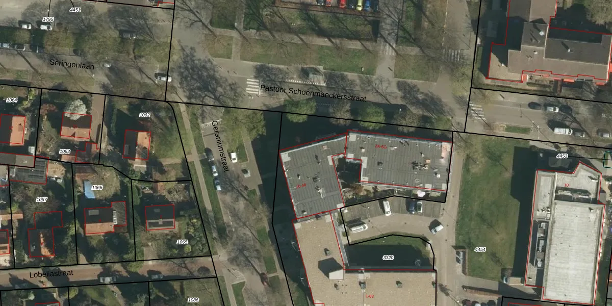 Het perceel waarop Geraniumstraat 42 staat heeft een oppervlakte van 3115 m². Dit is een zeer groot perceel. De perceeloppervlakte wordt geregistreerd door het Kadaster. Gedetailleerde informatie over de maten van dit perceel kunt u vinden in het rapport Kadastrale kaart met maatvoering van Geraniumstraat 42.