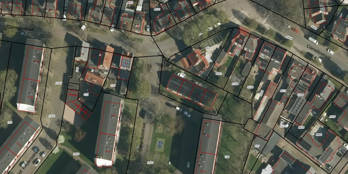 Het perceel waarop Gerardusstraat 1 staat heeft een oppervlakte van 680 m². Dit is een groot perceel. De perceeloppervlakte wordt geregistreerd door het Kadaster. Gedetailleerde informatie over de maten van dit perceel kunt u vinden in het rapport Kadastrale kaart met maatvoering van Gerardusstraat 1.