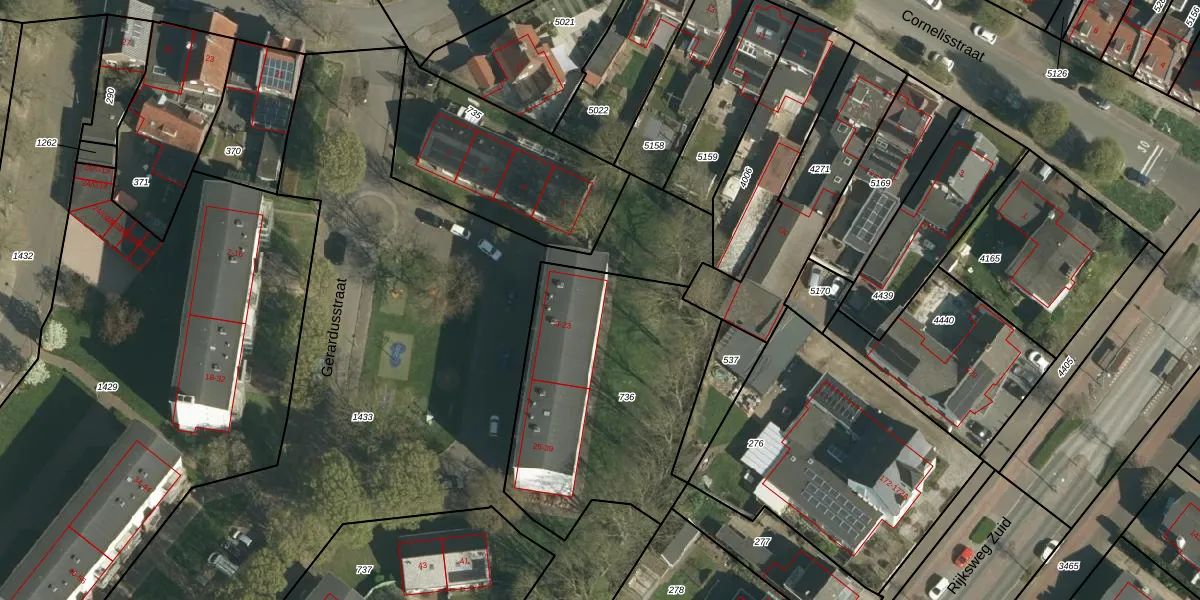 Het perceel waarop Gerardusstraat 21 staat heeft een oppervlakte van 1140 m². Dit is een zeer groot perceel. De perceeloppervlakte wordt geregistreerd door het Kadaster. Gedetailleerde informatie over de maten van dit perceel kunt u vinden in het rapport Kadastrale kaart met maatvoering van Gerardusstraat 21.