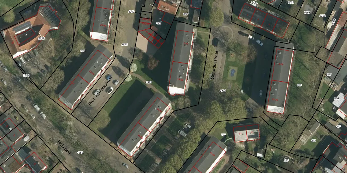 Het perceel waarop Gerardusstraat 28 staat heeft een oppervlakte van 3032 m². Dit is een zeer groot perceel. De perceeloppervlakte wordt geregistreerd door het Kadaster. Gedetailleerde informatie over de maten van dit perceel kunt u vinden in het rapport Kadastrale kaart met maatvoering van Gerardusstraat 28.