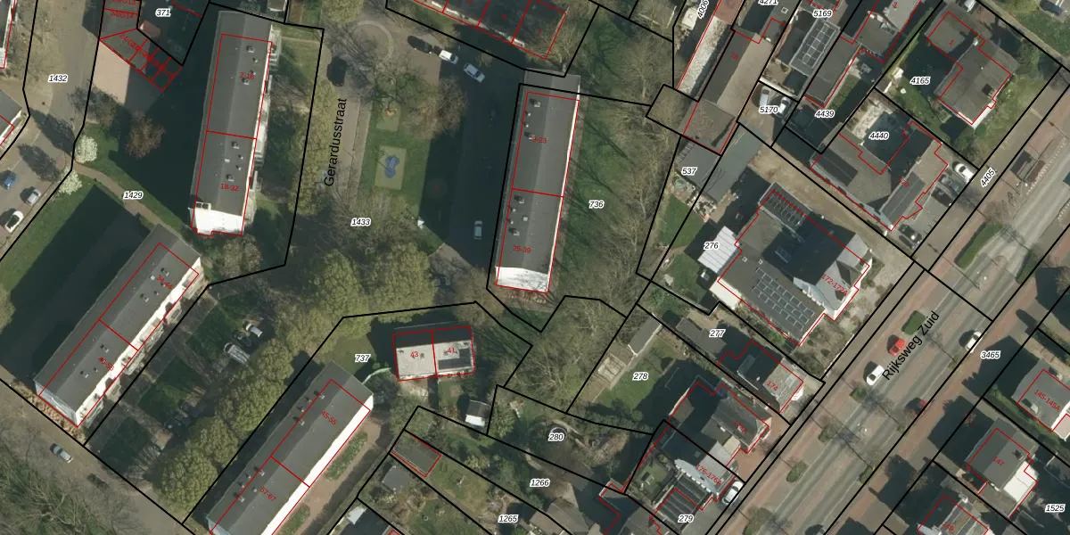 Het perceel waarop Gerardusstraat 35 staat heeft een oppervlakte van 1140 m². Dit is een zeer groot perceel. De perceeloppervlakte wordt geregistreerd door het Kadaster. Gedetailleerde informatie over de maten van dit perceel kunt u vinden in het rapport Kadastrale kaart met maatvoering van Gerardusstraat 35.