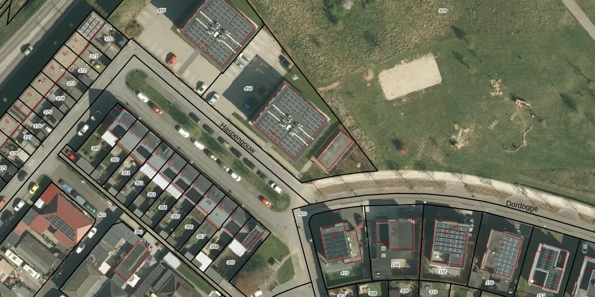 Het perceel waarop Haspengouw 104 staat heeft een oppervlakte van 1420 m². Dit is een zeer groot perceel. De perceeloppervlakte wordt geregistreerd door het Kadaster. Gedetailleerde informatie over de maten van dit perceel kunt u vinden in het rapport Kadastrale kaart met maatvoering van Haspengouw 104.