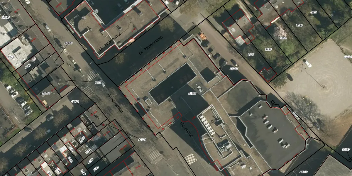 Het perceel waarop Herenhof 28 staat heeft een oppervlakte van 5070 m². Dit is een zeer groot perceel. De perceeloppervlakte wordt geregistreerd door het Kadaster. Gedetailleerde informatie over de maten van dit perceel kunt u vinden in het rapport Kadastrale kaart met maatvoering van Herenhof 28.
