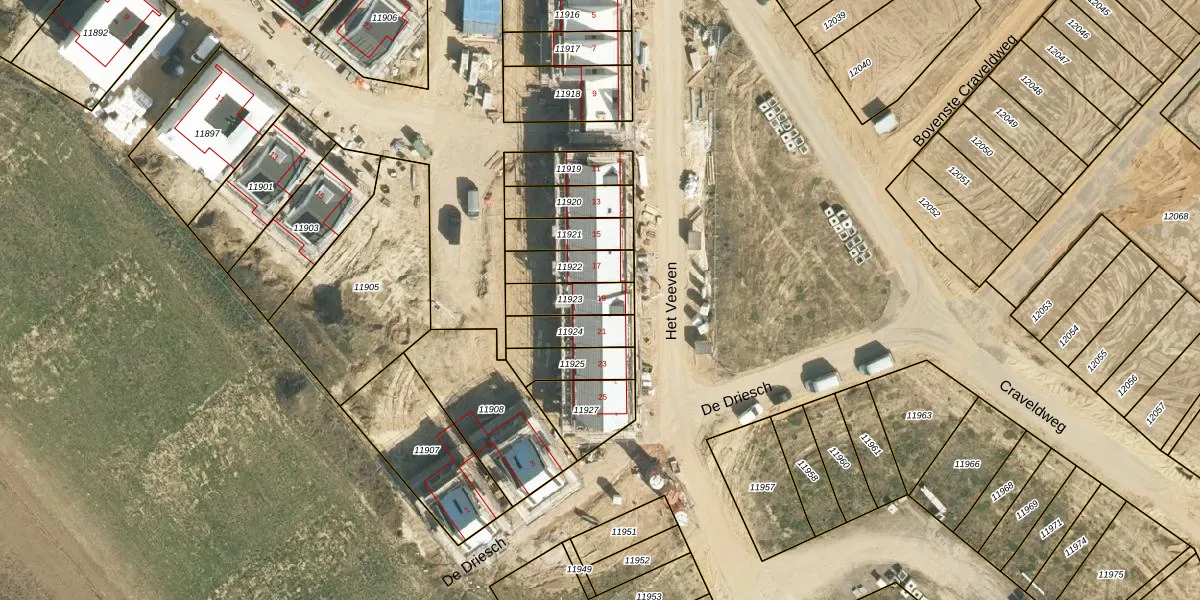 Het perceel waarop Het Veeven 19 staat heeft een oppervlakte van 116 m². Dit is een middelgroot perceel. De perceeloppervlakte wordt geregistreerd door het Kadaster. Gedetailleerde informatie over de maten van dit perceel kunt u vinden in het rapport Kadastrale kaart met maatvoering van Het Veeven 19.