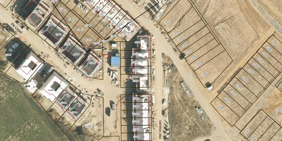 Het perceel waarop Het Veeven 7 staat heeft een oppervlakte van 122 m². Dit is een middelgroot perceel. De perceeloppervlakte wordt geregistreerd door het Kadaster. Gedetailleerde informatie over de maten van dit perceel kunt u vinden in het rapport Kadastrale kaart met maatvoering van Het Veeven 7.