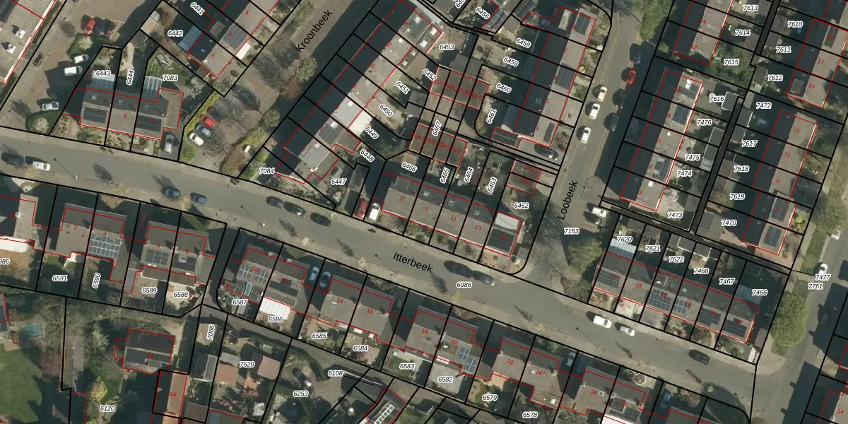 Itterbeek 9 is gelegen op kadastraal perceel GLN00B6465. Deze kadastrale aanduiding is uniek en wordt gebruikt door het Kadaster om eigendomsrechten en andere zakelijke rechten vast te leggen. Het perceel maakt onderdeel uit van de kadastrale gemeente Geleen.