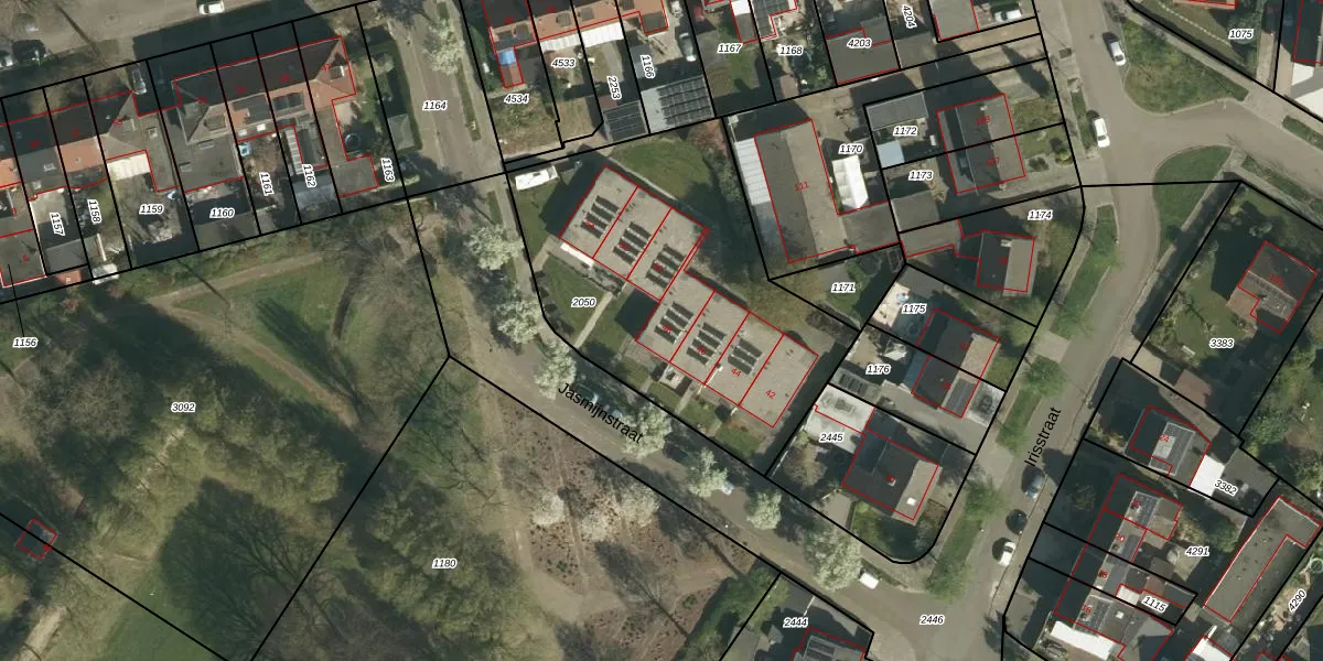 Jasmijnstraat 48 is gelegen op kadastraal perceel GLN00G2050. Deze kadastrale aanduiding is uniek en wordt gebruikt door het Kadaster om eigendomsrechten en andere zakelijke rechten vast te leggen. Het perceel maakt onderdeel uit van de kadastrale gemeente Geleen.