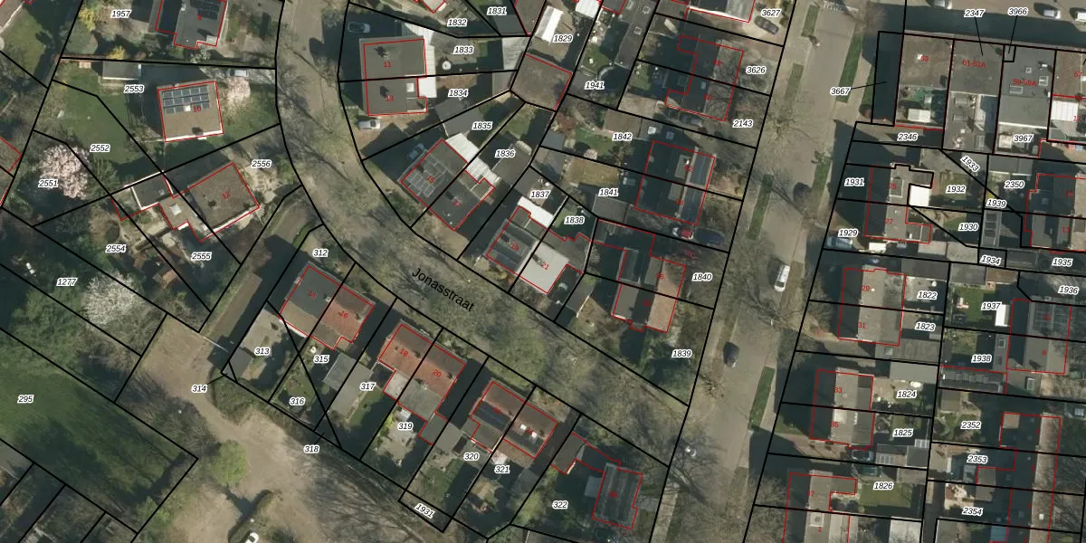 Het perceel waarop Jonasstraat 21 staat heeft een oppervlakte van 192 m². Dit is een middelgroot perceel. De perceeloppervlakte wordt geregistreerd door het Kadaster. Gedetailleerde informatie over de maten van dit perceel kunt u vinden in het rapport Kadastrale kaart met maatvoering van Jonasstraat 21.