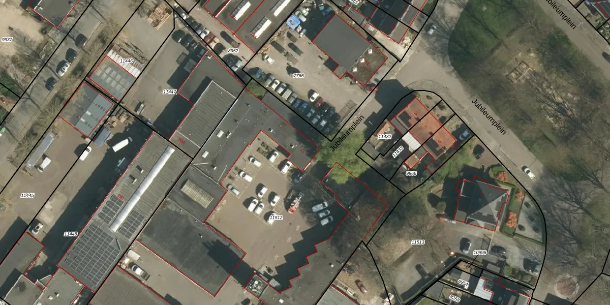 Het perceel waarop Jubileumplein 11 staat heeft een oppervlakte van 1,5 ha. Dit is een zeer groot perceel. De perceeloppervlakte wordt geregistreerd door het Kadaster. Gedetailleerde informatie over de maten van dit perceel kunt u vinden in het rapport Kadastrale kaart met maatvoering van Jubileumplein 11.