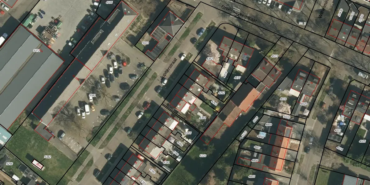 Het perceel waarop Jupiterstraat 108 staat heeft een oppervlakte van 398 m². Dit is een groot perceel. De perceeloppervlakte wordt geregistreerd door het Kadaster. Gedetailleerde informatie over de maten van dit perceel kunt u vinden in het rapport Kadastrale kaart met maatvoering van Jupiterstraat 108.