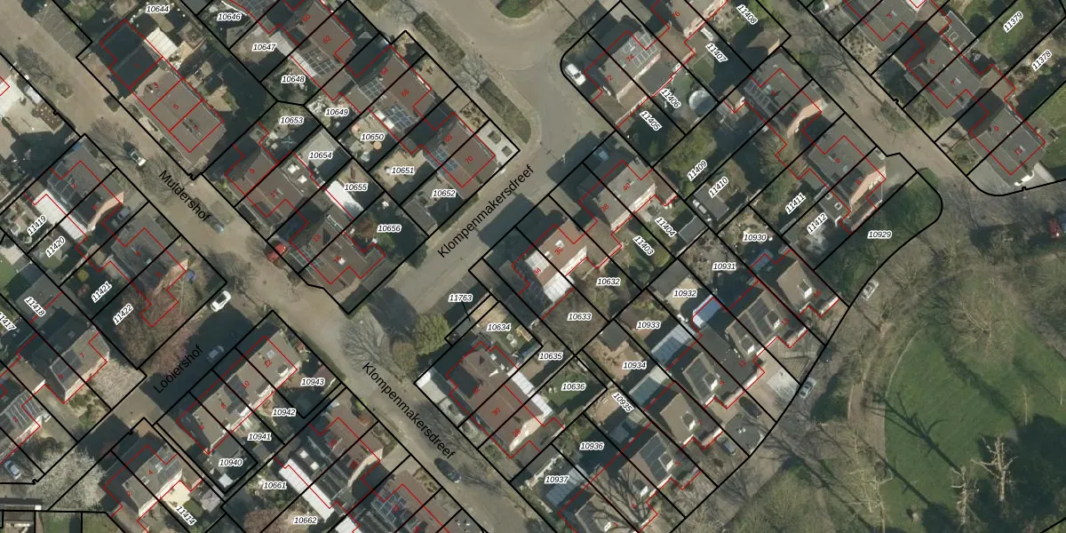 Gebruik de zoekbalk of klik op een perceel voor informatie over de adressen binnen dit perceel.