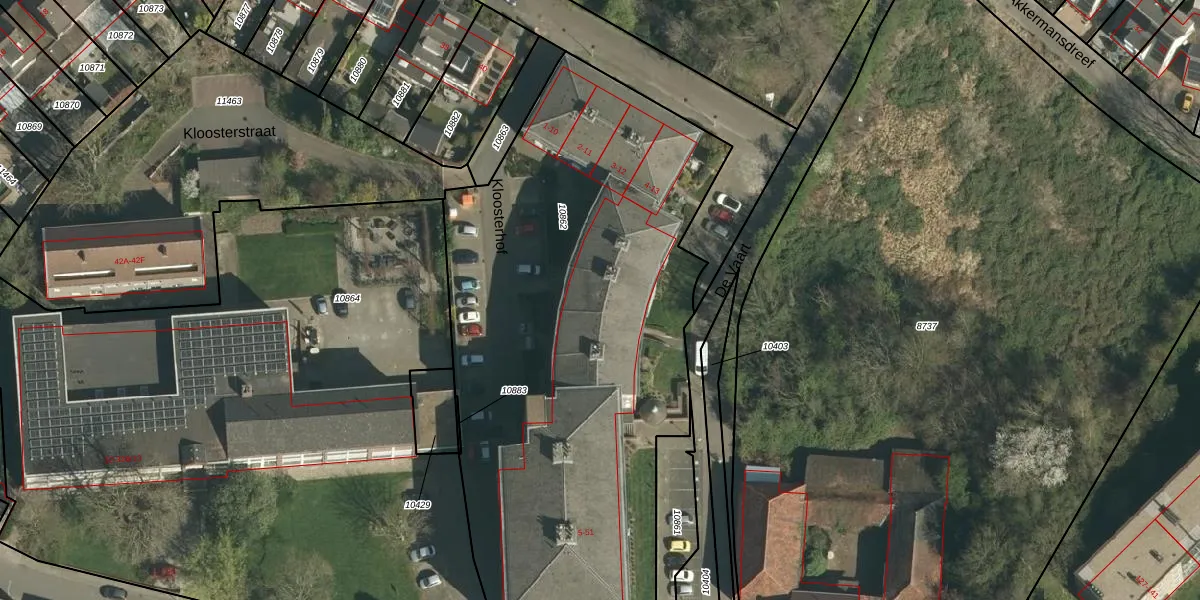 Het perceel waarop Kloosterhof 7 staat heeft een oppervlakte van 3380 m². Dit is een zeer groot perceel. De perceeloppervlakte wordt geregistreerd door het Kadaster. Gedetailleerde informatie over de maten van dit perceel kunt u vinden in het rapport Kadastrale kaart met maatvoering van Kloosterhof 7.