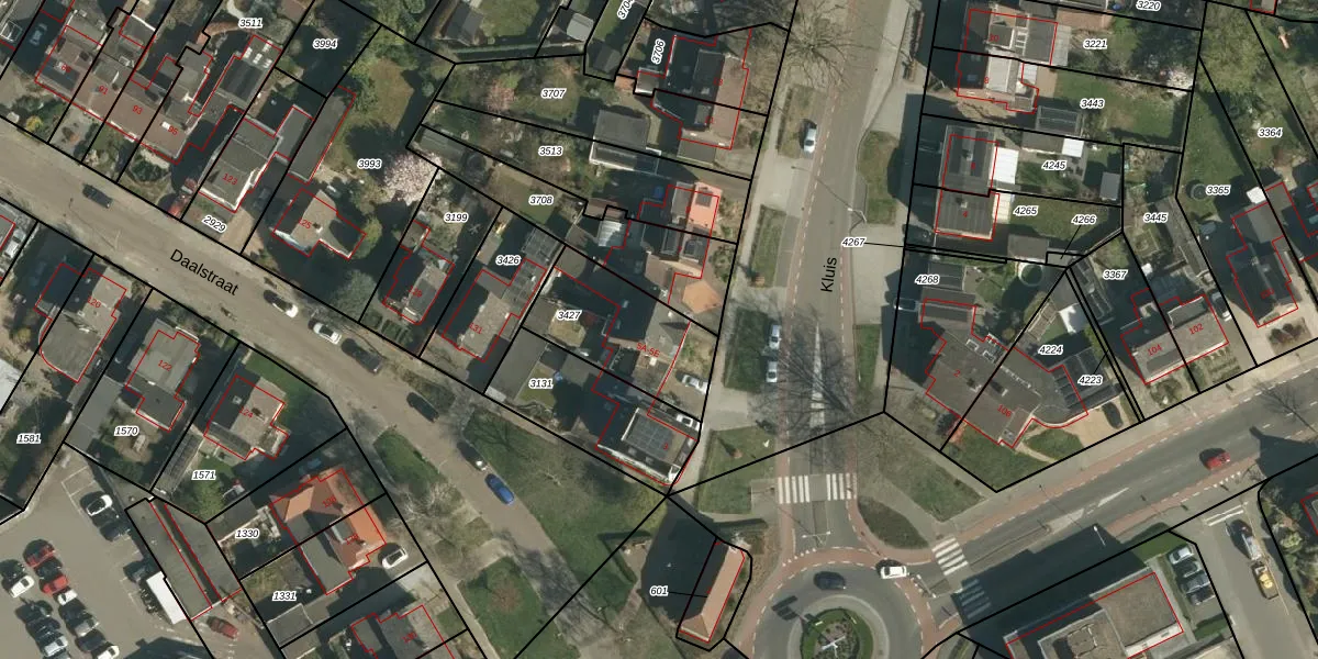 Het perceel waarop Kluis 5-E staat heeft een oppervlakte van 390 m². Dit is een groot perceel. De perceeloppervlakte wordt geregistreerd door het Kadaster. Gedetailleerde informatie over de maten van dit perceel kunt u vinden in het rapport Kadastrale kaart met maatvoering van Kluis 5-E.