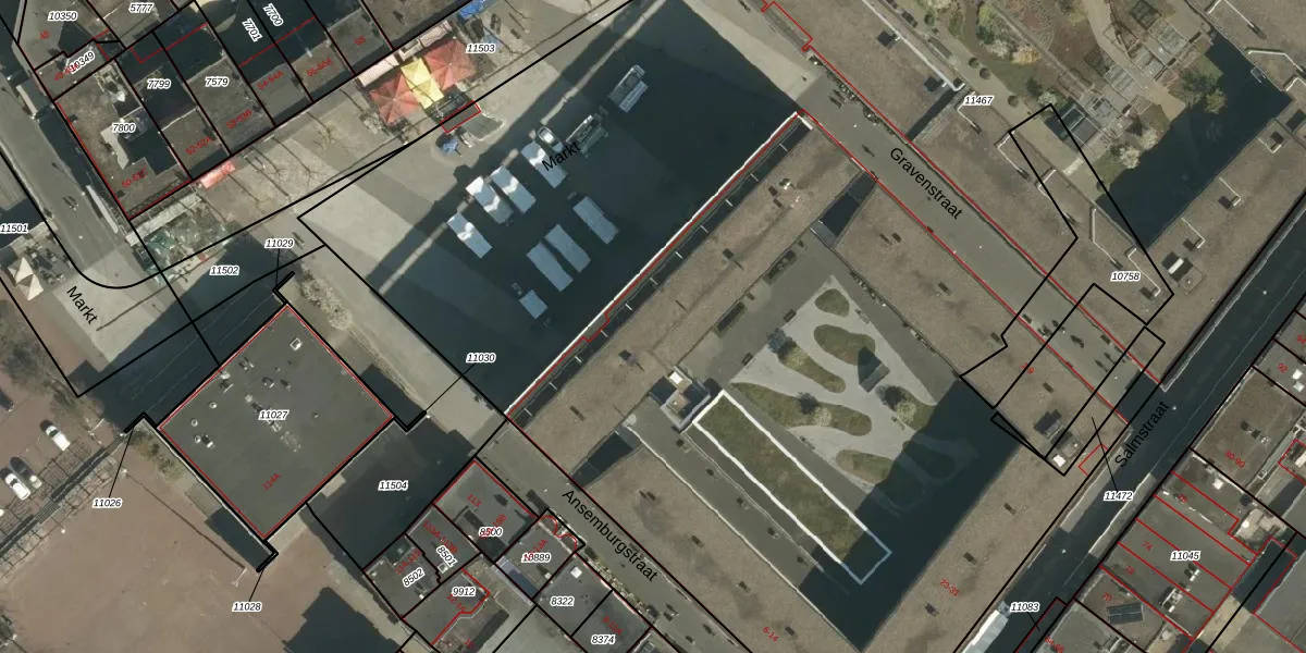 Het perceel waarop Markt 109-C staat heeft een oppervlakte van 1,2 ha. Dit is een zeer groot perceel. De perceeloppervlakte wordt geregistreerd door het Kadaster. Gedetailleerde informatie over de maten van dit perceel kunt u vinden in het rapport Kadastrale kaart met maatvoering van Markt 109-C.