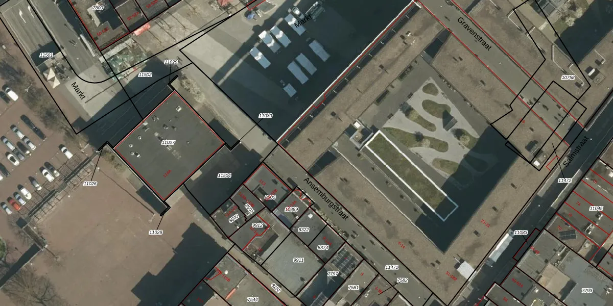 Het perceel waarop Markt 109-G staat heeft een oppervlakte van 1,2 ha. Dit is een zeer groot perceel. De perceeloppervlakte wordt geregistreerd door het Kadaster. Gedetailleerde informatie over de maten van dit perceel kunt u vinden in het rapport Kadastrale kaart met maatvoering van Markt 109-G.