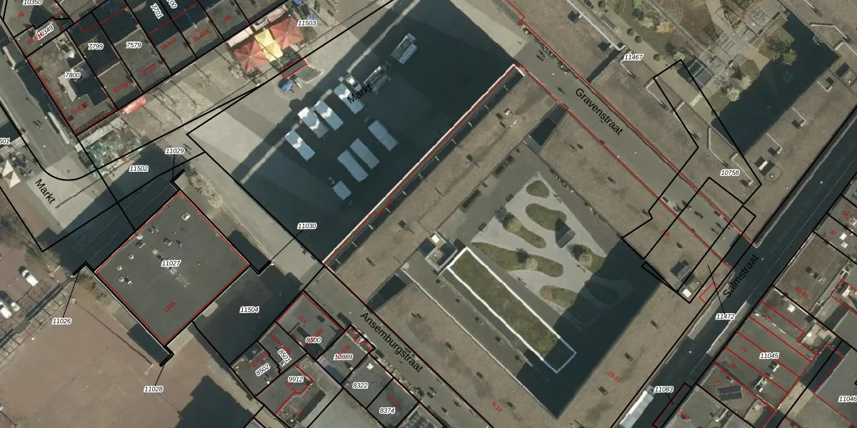 Het perceel waarop Markt 109-I staat heeft een oppervlakte van 1,2 ha. Dit is een zeer groot perceel. De perceeloppervlakte wordt geregistreerd door het Kadaster. Gedetailleerde informatie over de maten van dit perceel kunt u vinden in het rapport Kadastrale kaart met maatvoering van Markt 109-I.