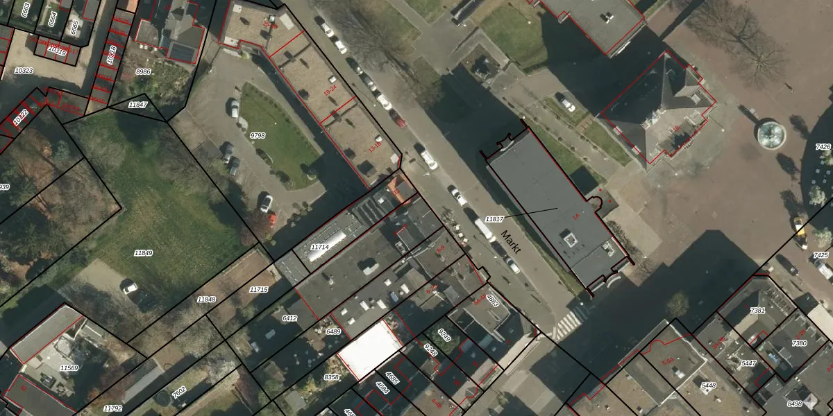 Het perceel waarop Markt 11 staat heeft een oppervlakte van 590 m². Dit is een groot perceel. De perceeloppervlakte wordt geregistreerd door het Kadaster. Gedetailleerde informatie over de maten van dit perceel kunt u vinden in het rapport Kadastrale kaart met maatvoering van Markt 11.