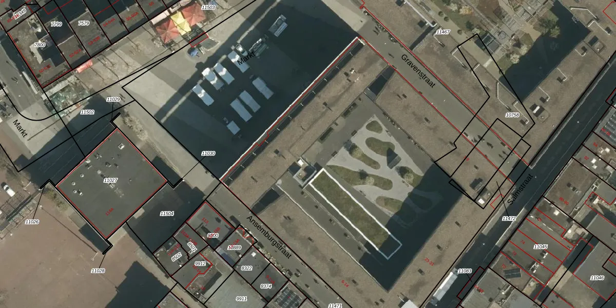 Het perceel waarop Markt 110-C staat heeft een oppervlakte van 1,2 ha. Dit is een zeer groot perceel. De perceeloppervlakte wordt geregistreerd door het Kadaster. Gedetailleerde informatie over de maten van dit perceel kunt u vinden in het rapport Kadastrale kaart met maatvoering van Markt 110-C.