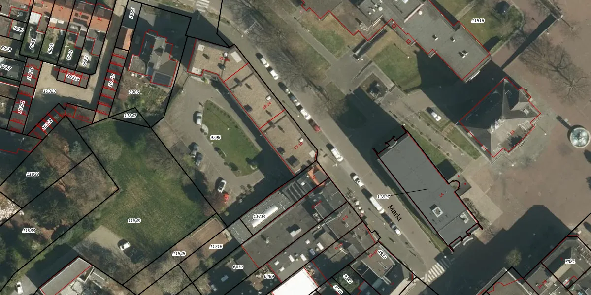 Markt 14 is gelegen op kadastraal perceel GLN00A9798. Deze kadastrale aanduiding is uniek en wordt gebruikt door het Kadaster om eigendomsrechten en andere zakelijke rechten vast te leggen. Het perceel maakt onderdeel uit van de kadastrale gemeente Geleen.