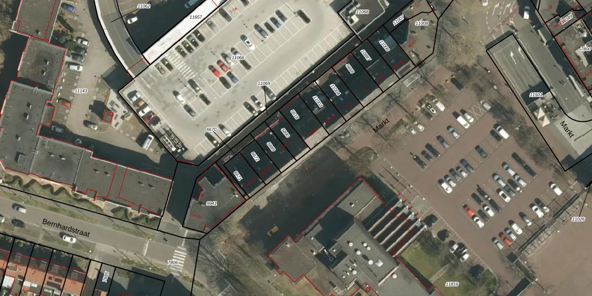 Het perceel waarop Markt 36 staat heeft een oppervlakte van 114 m². Dit is een middelgroot perceel. De perceeloppervlakte wordt geregistreerd door het Kadaster. Gedetailleerde informatie over de maten van dit perceel kunt u vinden in het rapport Kadastrale kaart met maatvoering van Markt 36.