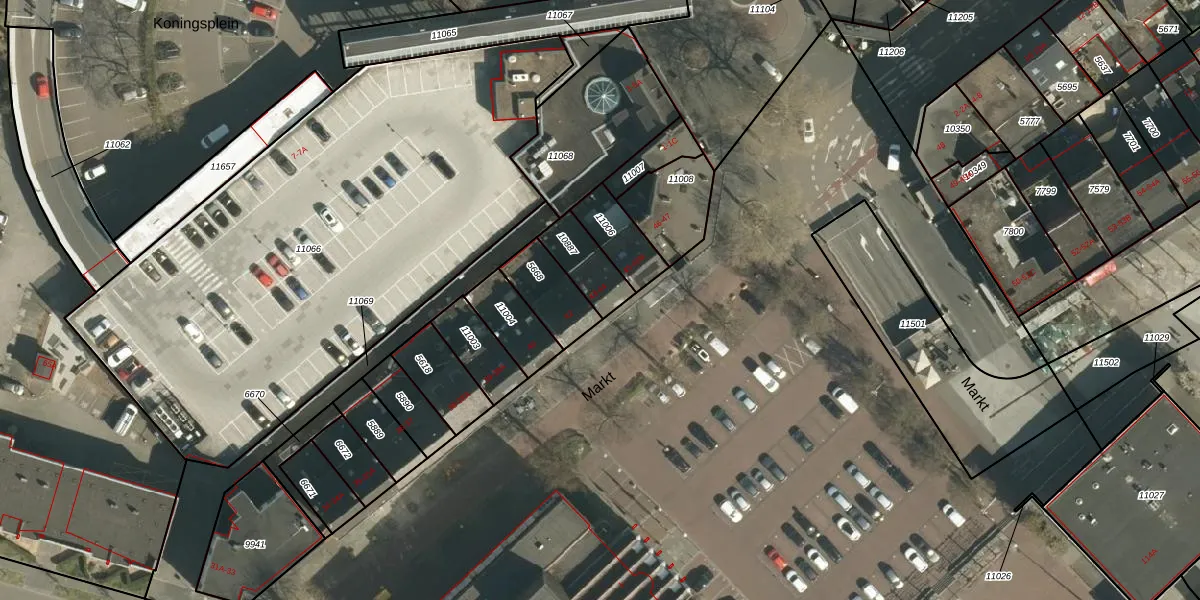 Het perceel waarop Markt 43 staat heeft een oppervlakte van 122 m². Dit is een middelgroot perceel. De perceeloppervlakte wordt geregistreerd door het Kadaster. Gedetailleerde informatie over de maten van dit perceel kunt u vinden in het rapport Kadastrale kaart met maatvoering van Markt 43.