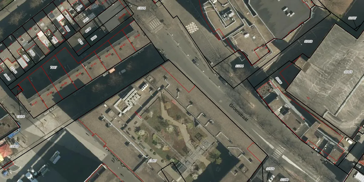 Het perceel waarop Markt 95-I staat heeft een oppervlakte van 1,2 ha. Dit is een zeer groot perceel. De perceeloppervlakte wordt geregistreerd door het Kadaster. Gedetailleerde informatie over de maten van dit perceel kunt u vinden in het rapport Kadastrale kaart met maatvoering van Markt 95-I.
