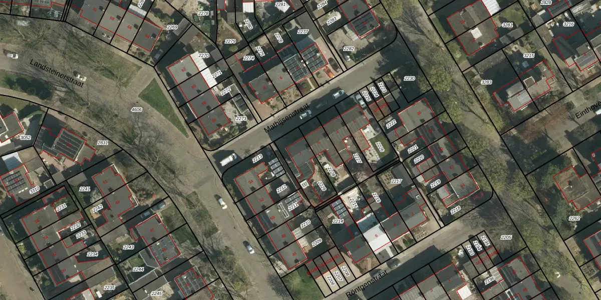 Het perceel waarop Mathijsenstraat 7 staat heeft een oppervlakte van 245 m². Dit is een middelgroot perceel. De perceeloppervlakte wordt geregistreerd door het Kadaster. Gedetailleerde informatie over de maten van dit perceel kunt u vinden in het rapport Kadastrale kaart met maatvoering van Mathijsenstraat 7.
