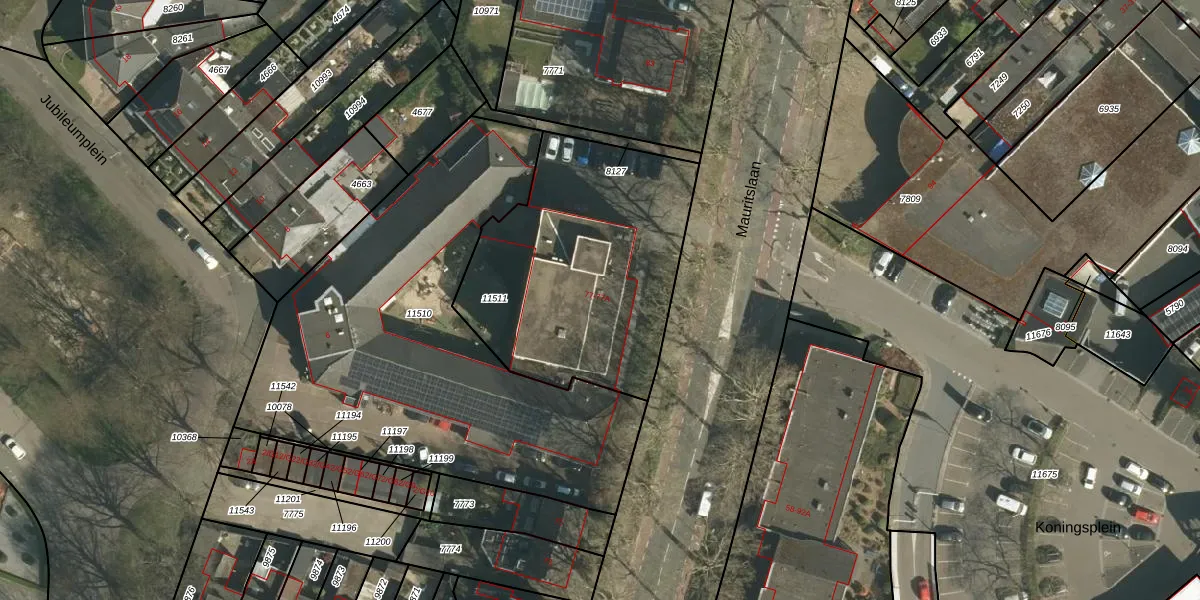 Het perceel waarop Mauritslaan 77 staat heeft een oppervlakte van 1228 m². Dit is een zeer groot perceel. De perceeloppervlakte wordt geregistreerd door het Kadaster. Gedetailleerde informatie over de maten van dit perceel kunt u vinden in het rapport Kadastrale kaart met maatvoering van Mauritslaan 77.