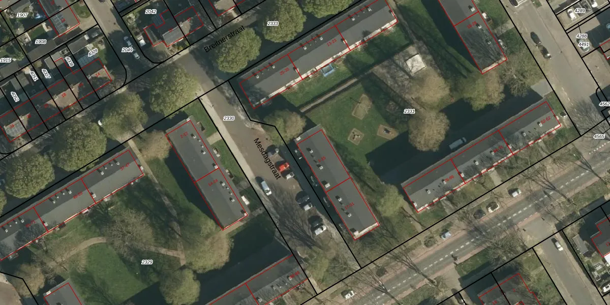 Het perceel waarop Mesdagstraat 1 staat heeft een oppervlakte van 6465 m². Dit is een zeer groot perceel. De perceeloppervlakte wordt geregistreerd door het Kadaster. Gedetailleerde informatie over de maten van dit perceel kunt u vinden in het rapport Kadastrale kaart met maatvoering van Mesdagstraat 1.
