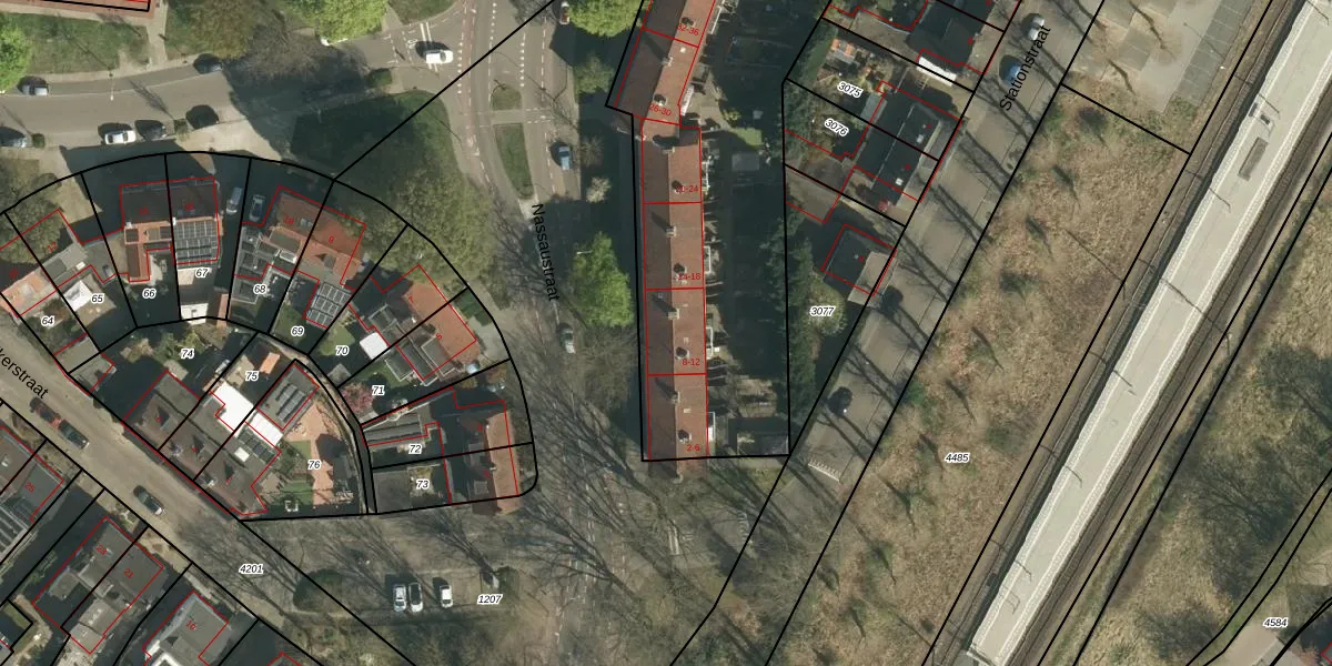 Het perceel waarop Nassaustraat 10 staat heeft een oppervlakte van 4630 m². Dit is een zeer groot perceel. De perceeloppervlakte wordt geregistreerd door het Kadaster. Gedetailleerde informatie over de maten van dit perceel kunt u vinden in het rapport Kadastrale kaart met maatvoering van Nassaustraat 10.