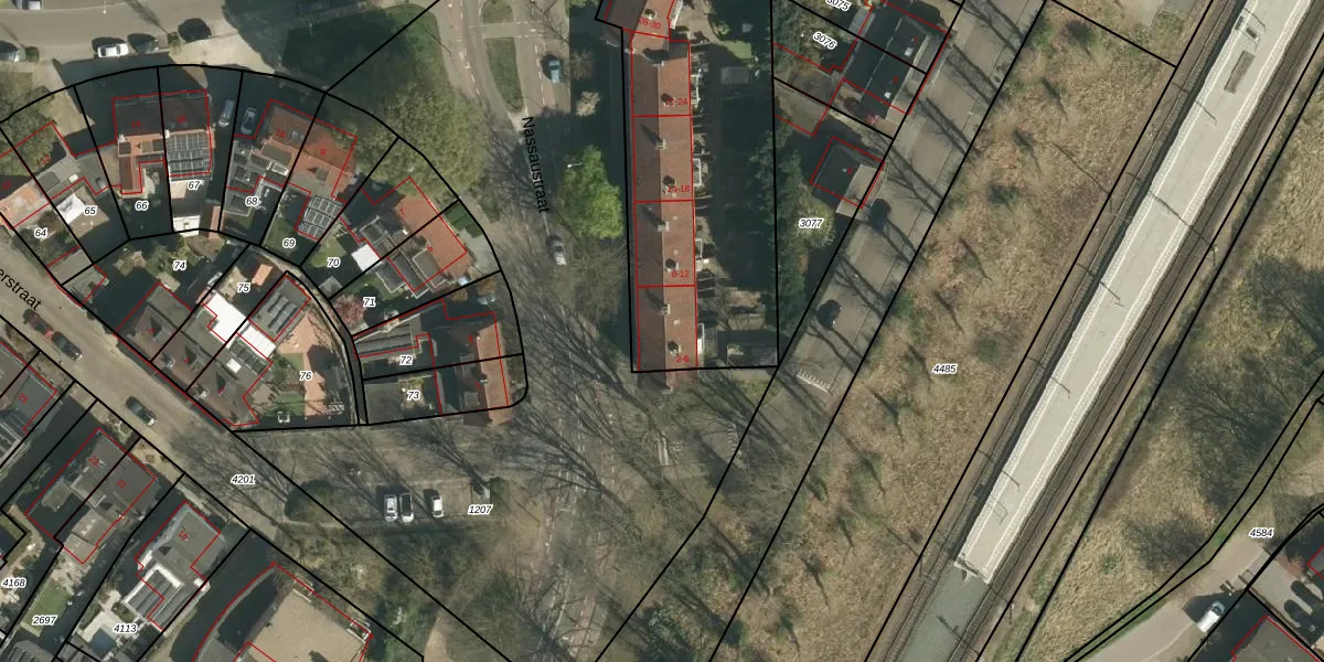Nassaustraat 4 is gelegen op kadastraal perceel GLN00F1201. Deze kadastrale aanduiding is uniek en wordt gebruikt door het Kadaster om eigendomsrechten en andere zakelijke rechten vast te leggen. Het perceel maakt onderdeel uit van de kadastrale gemeente Geleen.