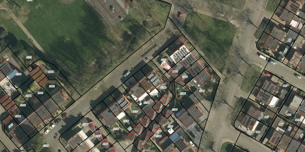 Het perceel waarop Nobelstraat 1 staat heeft een oppervlakte van 271 m². Dit is een middelgroot perceel. De perceeloppervlakte wordt geregistreerd door het Kadaster. Gedetailleerde informatie over de maten van dit perceel kunt u vinden in het rapport Kadastrale kaart met maatvoering van Nobelstraat 1.