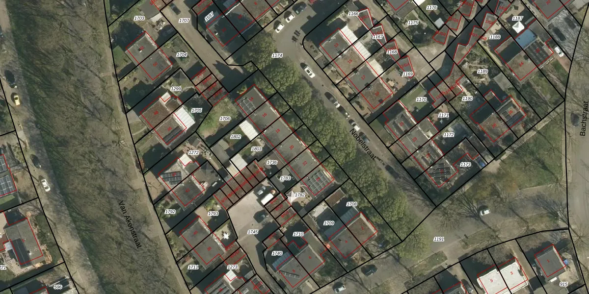 Het perceel waarop Nobelstraat 20 staat heeft een oppervlakte van 172 m². Dit is een middelgroot perceel. De perceeloppervlakte wordt geregistreerd door het Kadaster. Gedetailleerde informatie over de maten van dit perceel kunt u vinden in het rapport Kadastrale kaart met maatvoering van Nobelstraat 20.