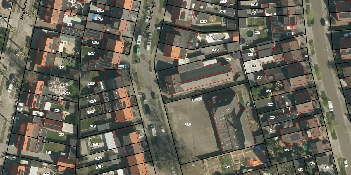 Het perceel waarop Oleanderstraat 4 staat heeft een oppervlakte van 945 m². Dit is een groot perceel. De perceeloppervlakte wordt geregistreerd door het Kadaster. Gedetailleerde informatie over de maten van dit perceel kunt u vinden in het rapport Kadastrale kaart met maatvoering van Oleanderstraat 4.
