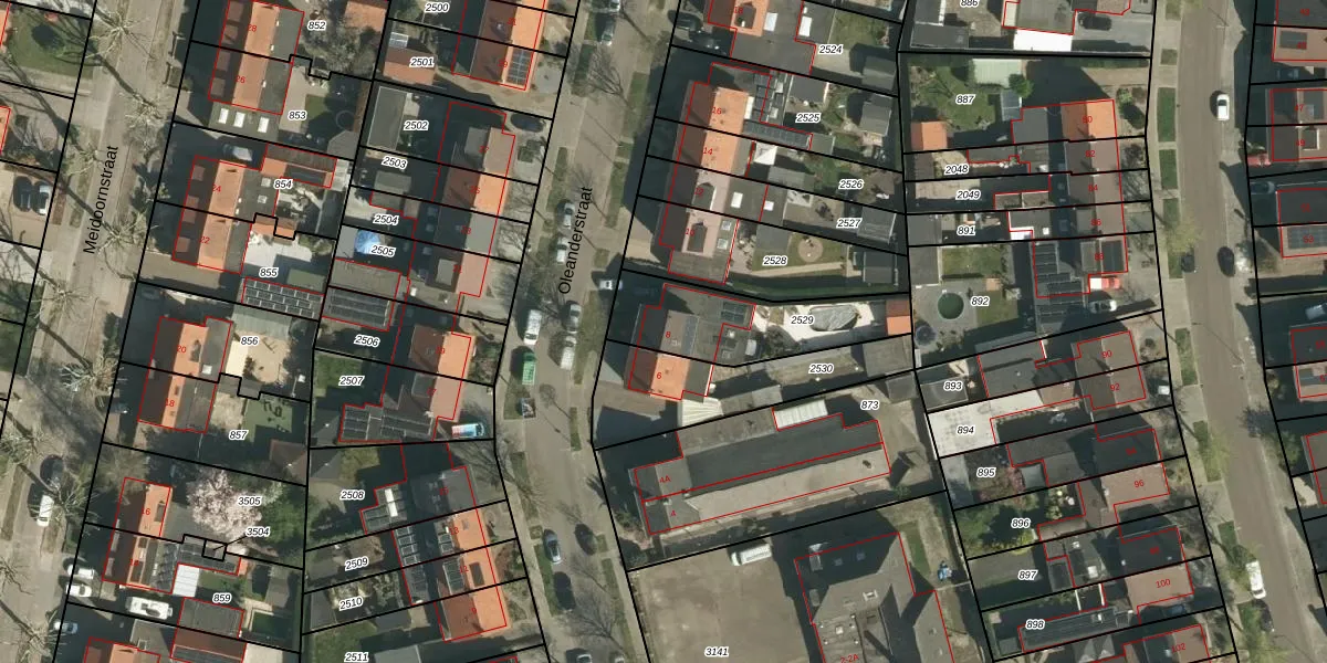 Gebruik de zoekbalk of klik op een perceel voor informatie over de adressen binnen dit perceel.