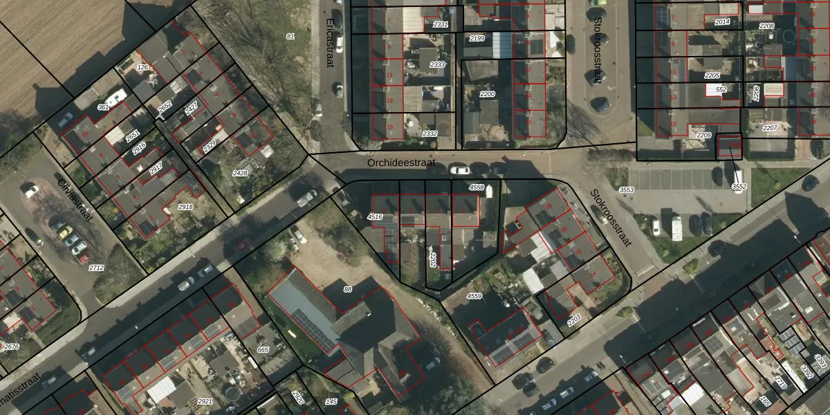 Orchideestraat 5 is gelegen op kadastraal perceel GLN00G4559. Deze kadastrale aanduiding is uniek en wordt gebruikt door het Kadaster om eigendomsrechten en andere zakelijke rechten vast te leggen. Het perceel maakt onderdeel uit van de kadastrale gemeente Geleen.