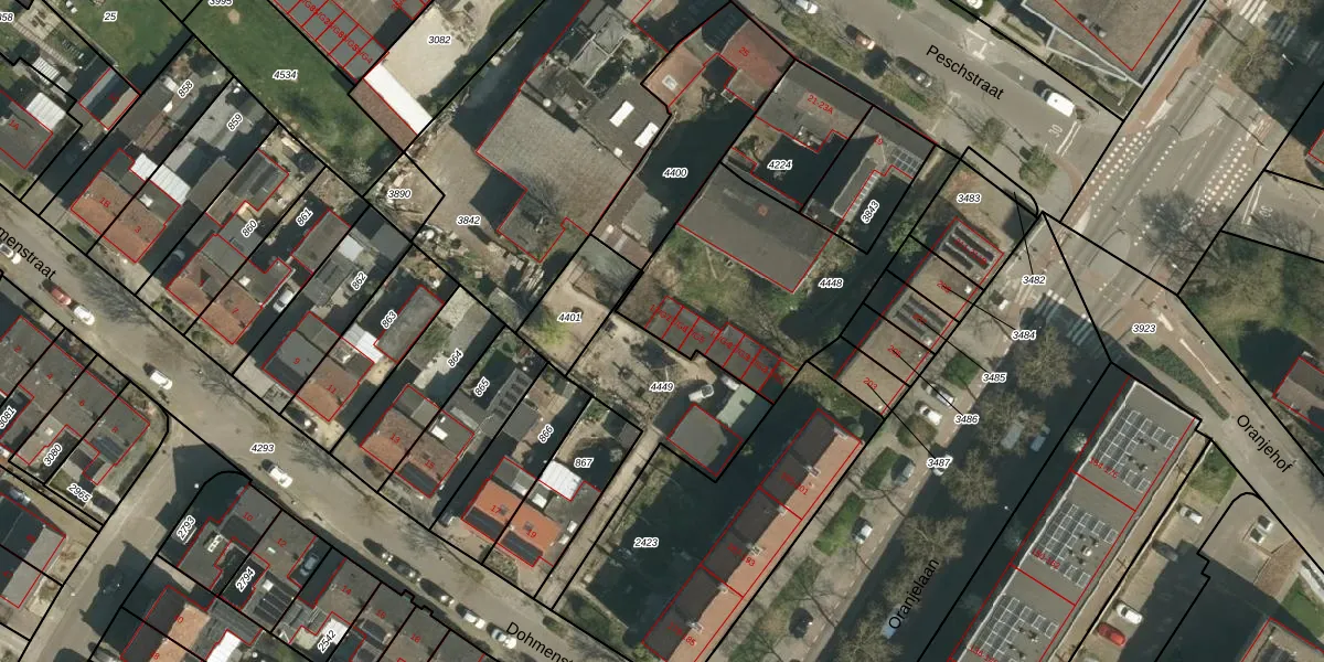 Het perceel waarop Peschstraat 17-G7 staat heeft een oppervlakte van 855 m². Dit is een groot perceel. De perceeloppervlakte wordt geregistreerd door het Kadaster. Gedetailleerde informatie over de maten van dit perceel kunt u vinden in het rapport Kadastrale kaart met maatvoering van Peschstraat 17-G7.