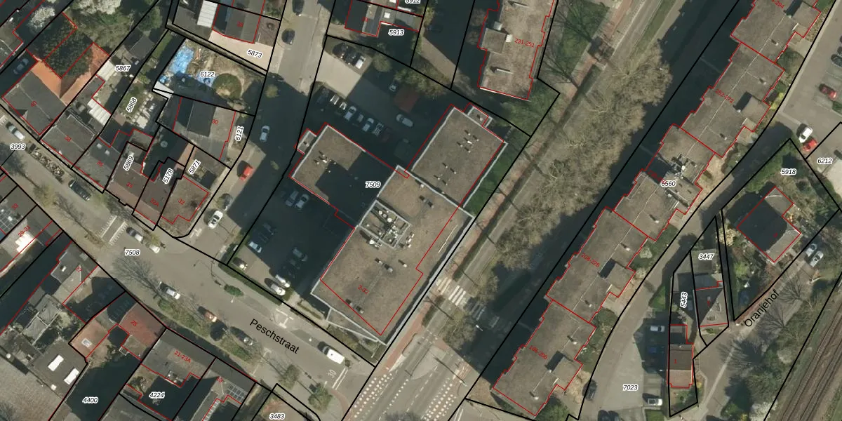 Het perceel waarop Peschstraat 2-K-216 staat heeft een oppervlakte van 2990 m². Dit is een zeer groot perceel. De perceeloppervlakte wordt geregistreerd door het Kadaster. Gedetailleerde informatie over de maten van dit perceel kunt u vinden in het rapport Kadastrale kaart met maatvoering van Peschstraat 2-K-216.