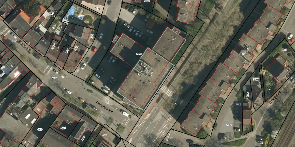 Het perceel waarop Peschstraat 30 staat heeft een oppervlakte van 2990 m². Dit is een zeer groot perceel. De perceeloppervlakte wordt geregistreerd door het Kadaster. Gedetailleerde informatie over de maten van dit perceel kunt u vinden in het rapport Kadastrale kaart met maatvoering van Peschstraat 30.