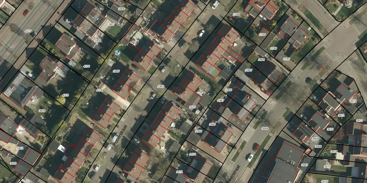 Potterstraat 45 is gelegen op kadastraal perceel GLN00F2620. Deze kadastrale aanduiding is uniek en wordt gebruikt door het Kadaster om eigendomsrechten en andere zakelijke rechten vast te leggen. Het perceel maakt onderdeel uit van de kadastrale gemeente Geleen.