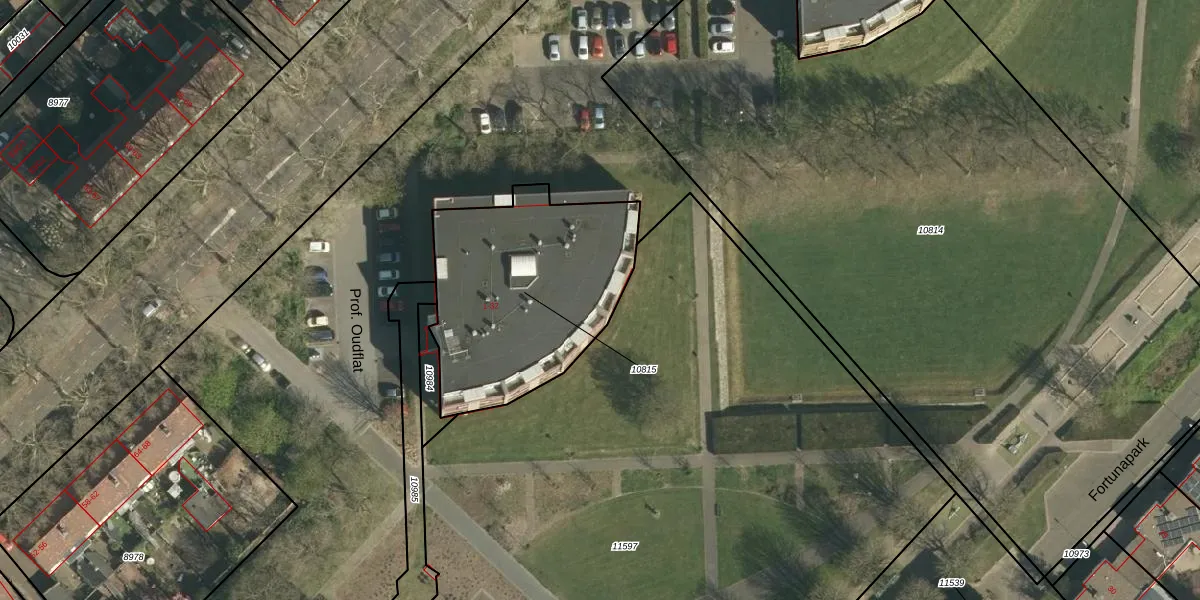Het perceel waarop Prof. Oudflat 20 staat heeft een oppervlakte van 962 m². Dit is een groot perceel. De perceeloppervlakte wordt geregistreerd door het Kadaster. Gedetailleerde informatie over de maten van dit perceel kunt u vinden in het rapport Kadastrale kaart met maatvoering van Prof. Oudflat 20.