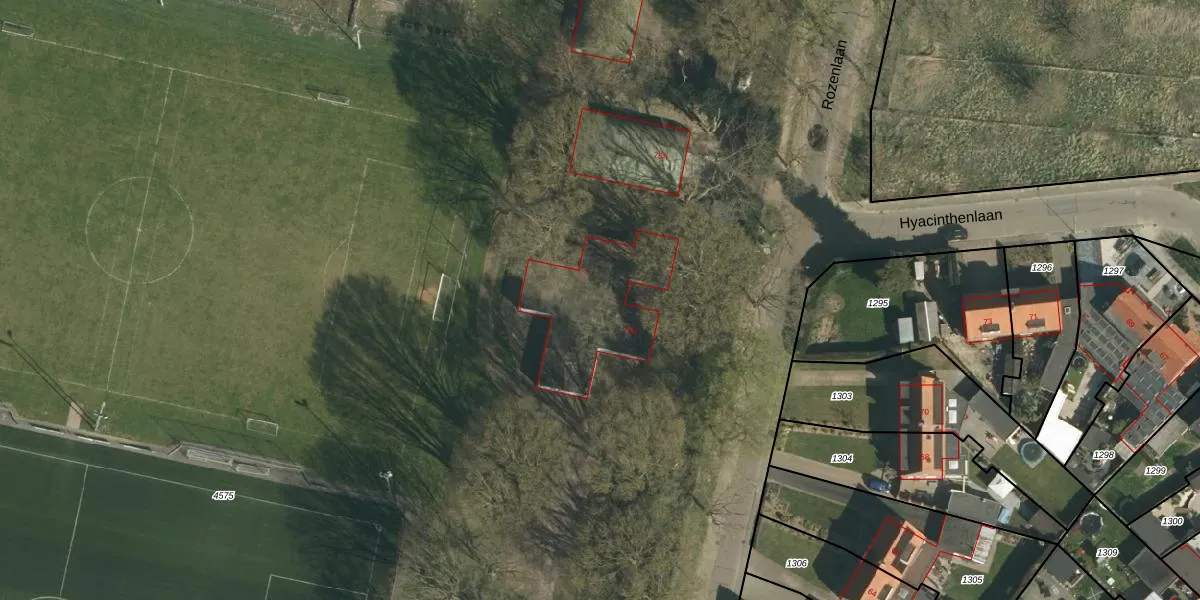 Het perceel waarop Rozenlaan 75-B staat heeft een oppervlakte van 7,1 ha. Dit is een zeer groot perceel. De perceeloppervlakte wordt geregistreerd door het Kadaster. Gedetailleerde informatie over de maten van dit perceel kunt u vinden in het rapport Kadastrale kaart met maatvoering van Rozenlaan 75-B.