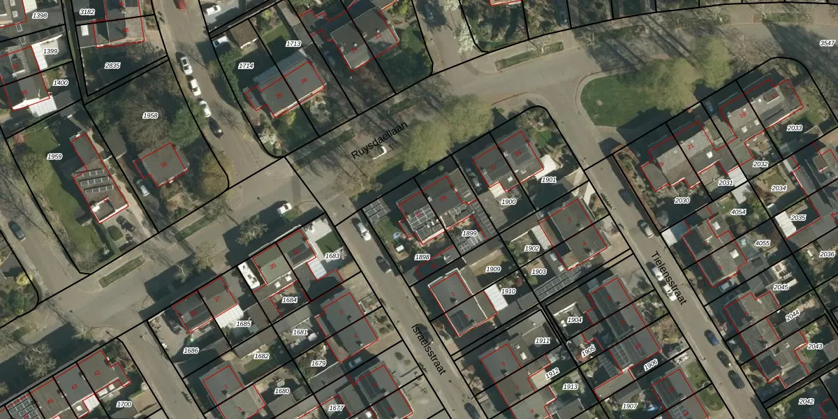 Het perceel waarop Ruysdaellaan 31 staat heeft een oppervlakte van 321 m². Dit is een groot perceel. De perceeloppervlakte wordt geregistreerd door het Kadaster. Gedetailleerde informatie over de maten van dit perceel kunt u vinden in het rapport Kadastrale kaart met maatvoering van Ruysdaellaan 31.