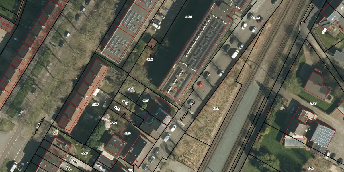 Het perceel waarop Stationstraat 57 staat heeft een oppervlakte van 3968 m². Dit is een zeer groot perceel. De perceeloppervlakte wordt geregistreerd door het Kadaster. Gedetailleerde informatie over de maten van dit perceel kunt u vinden in het rapport Kadastrale kaart met maatvoering van Stationstraat 57.