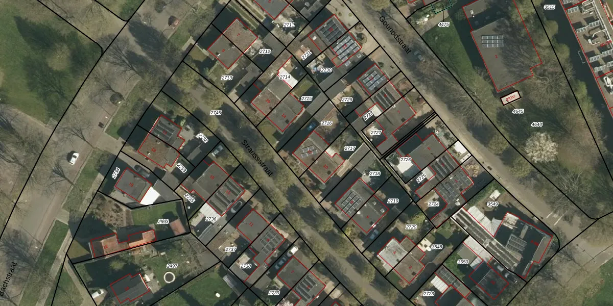 Straussstraat 12 is gelegen op kadastraal perceel GLN00F2716. Deze kadastrale aanduiding is uniek en wordt gebruikt door het Kadaster om eigendomsrechten en andere zakelijke rechten vast te leggen. Het perceel maakt onderdeel uit van de kadastrale gemeente Geleen.