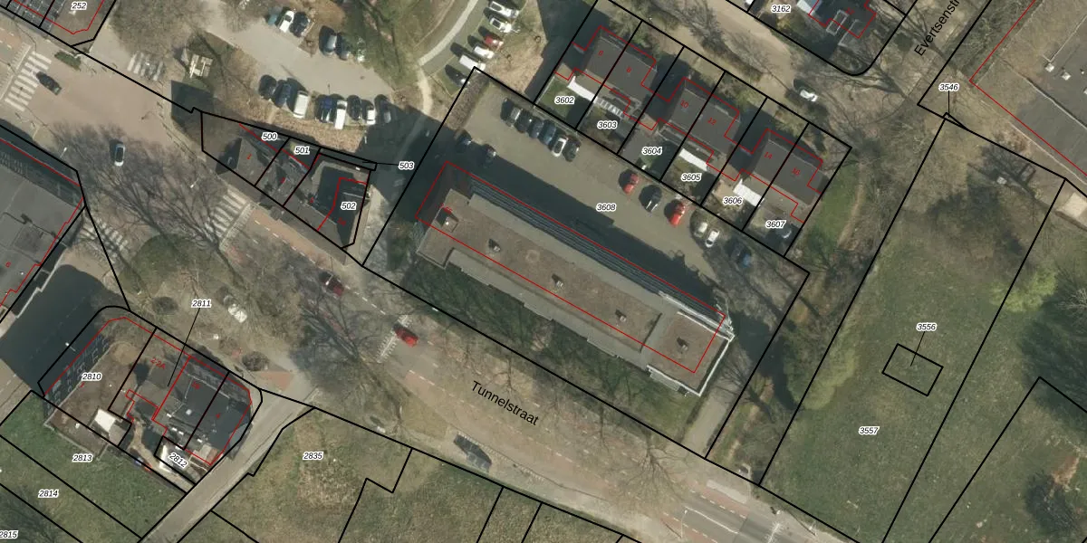 Tunnelstraat 13 is gelegen op kadastraal perceel GLN00G3608. Deze kadastrale aanduiding is uniek en wordt gebruikt door het Kadaster om eigendomsrechten en andere zakelijke rechten vast te leggen. Het perceel maakt onderdeel uit van de kadastrale gemeente Geleen.